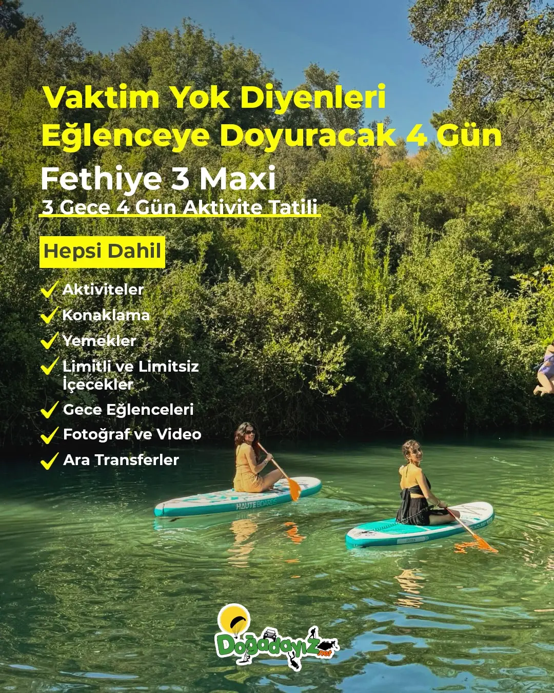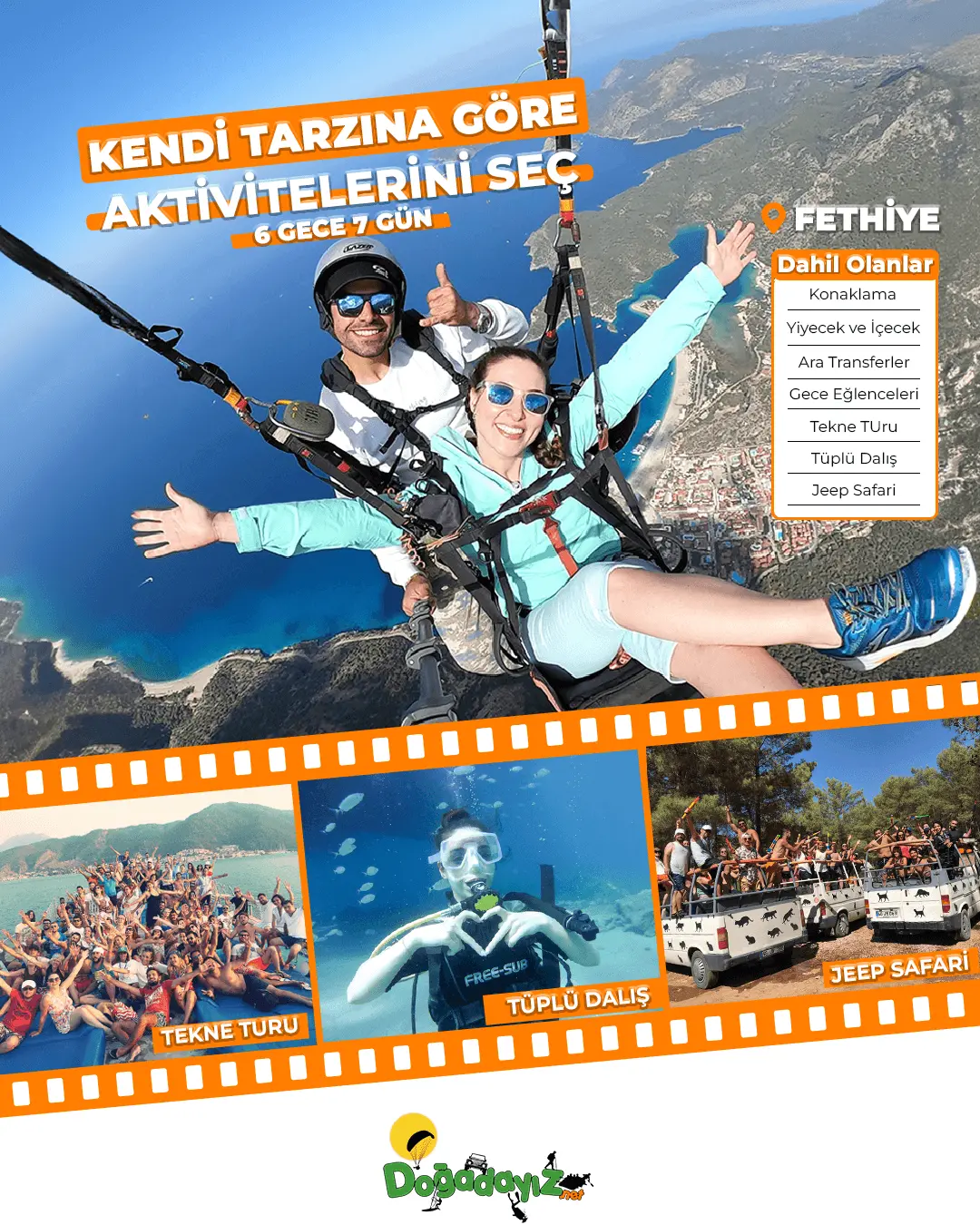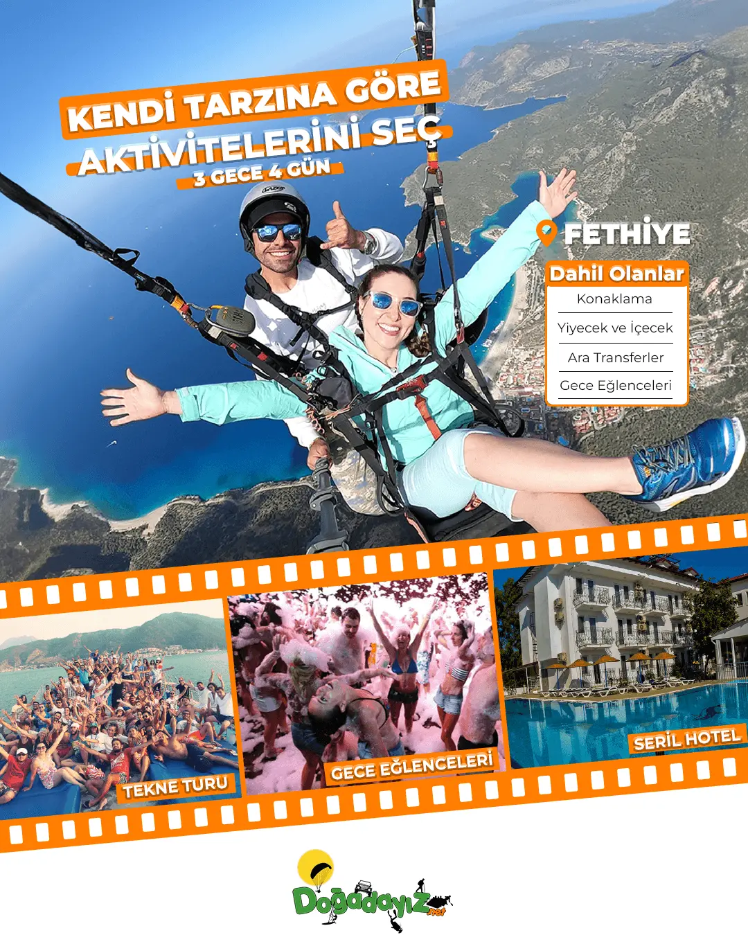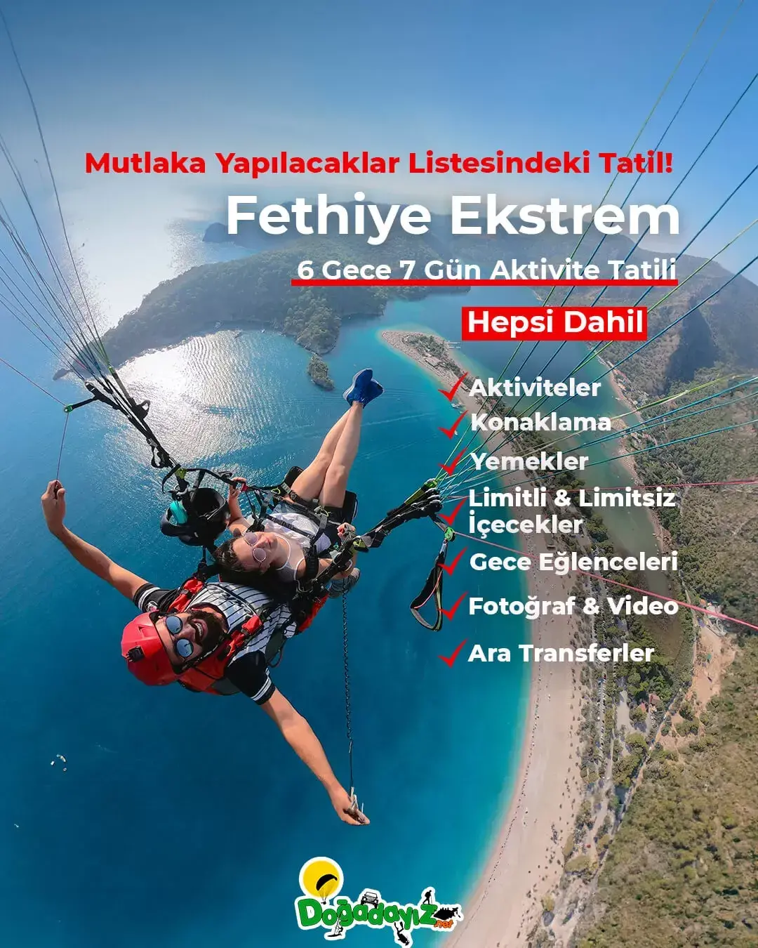 Fethiye / Çalış, Fethiye / Ölüdeniz, Marmaris lokasyonlarında sosyallik ile eğlence dolu aktivite tatil paketlerimizle, sizleri ekstrem dolu, unutulmaz bir yaz tatili yaşamaya davet ediyoruz!