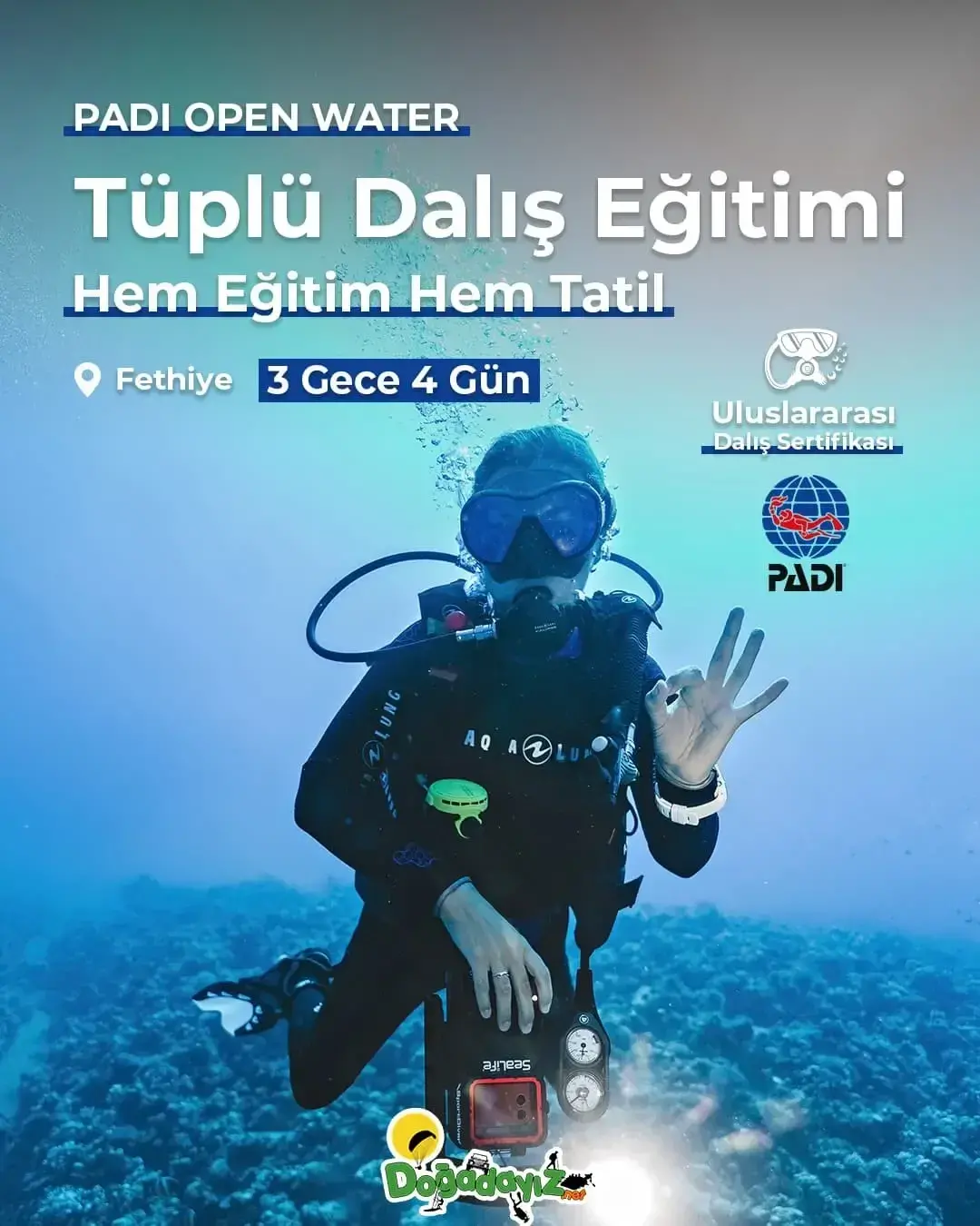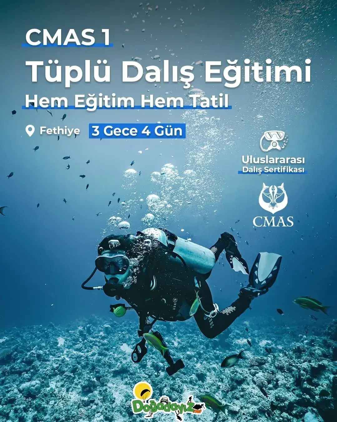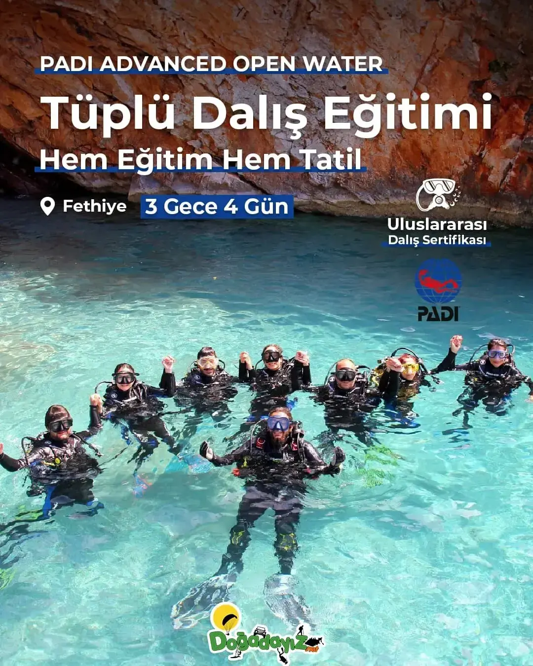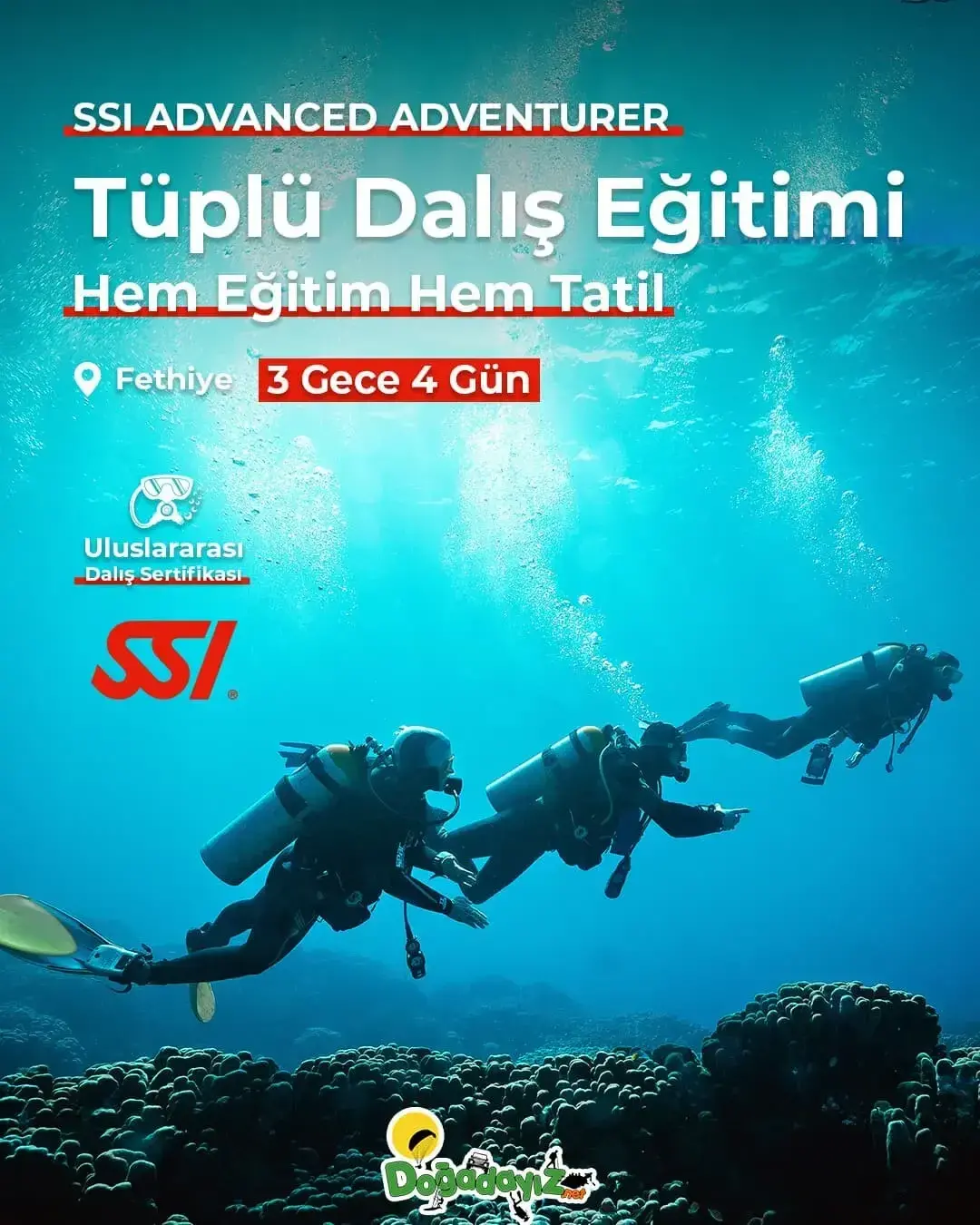 Türkiye’nin adrenalin merkezi Fethiye / Ölüdeniz ve çevresinde unutulmaz bir aktivite tatili planlarken, aynı zamanda profesyonel eğitimlerle yetkinlik kazanabilirsin. Fethiye / Çalış konaklama avantajlarıyla bölgenin tadını çıkarırken; uzman eğitmenler gözetiminde scuba diving (tüplü dalış), Marmaris ve çevresindeki nehirlerde rafting veya Babadağ’ın eşsiz manzarasında yamaç paraşütü gibi branşlarda başlangıçtan ileri seviyeye kadar eğitim alabilir, sertifikalı ve lisanslı bir sporcuya dönüşerek hobini profesyonelliğe taşıyabilirsin.